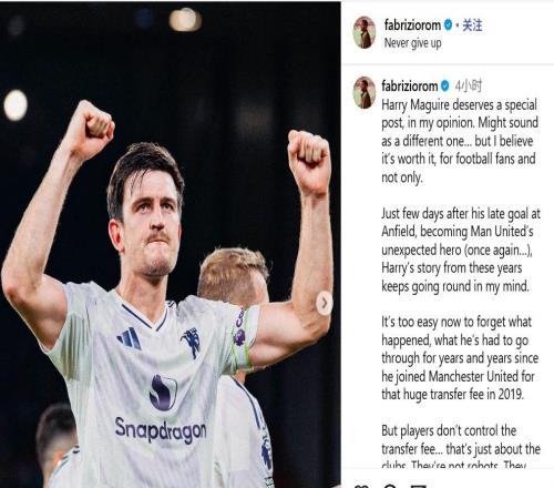 他值得!罗马诺为马奎尔发声:嘲讽他的人至少一半没看过比赛